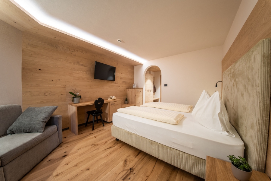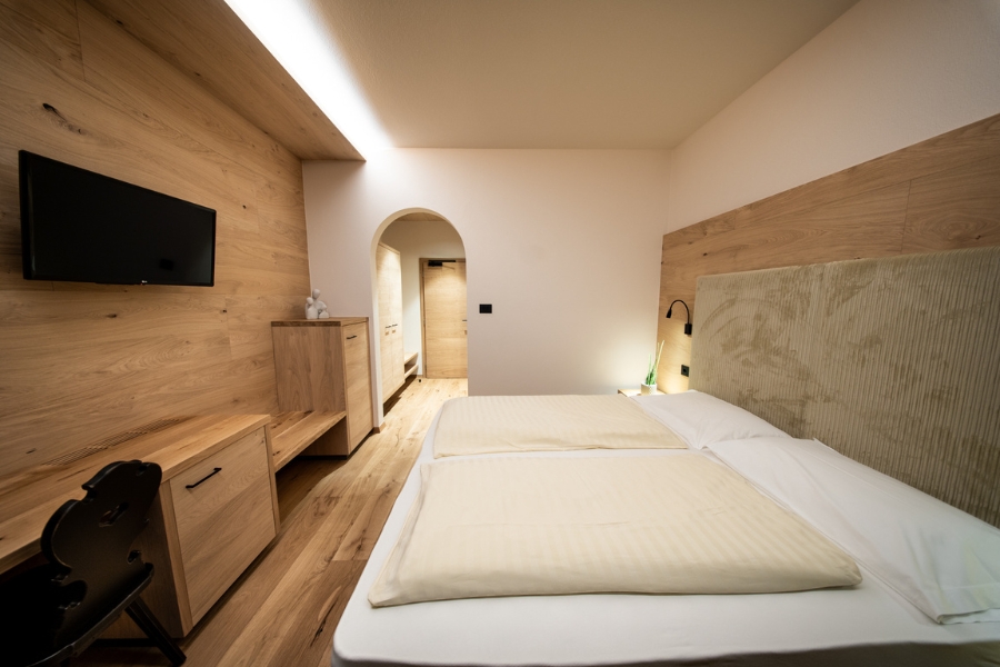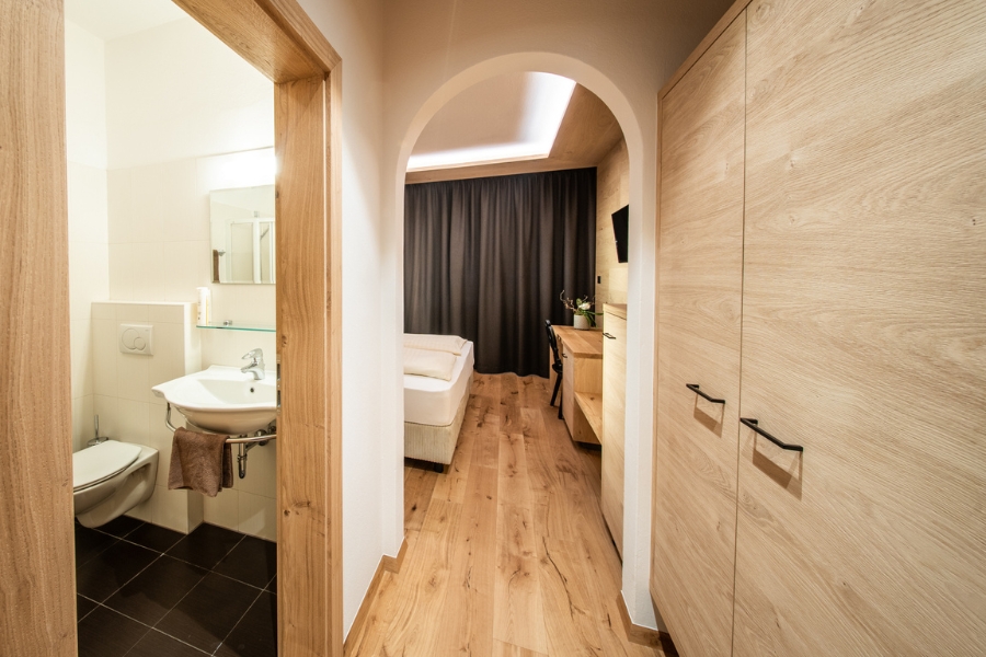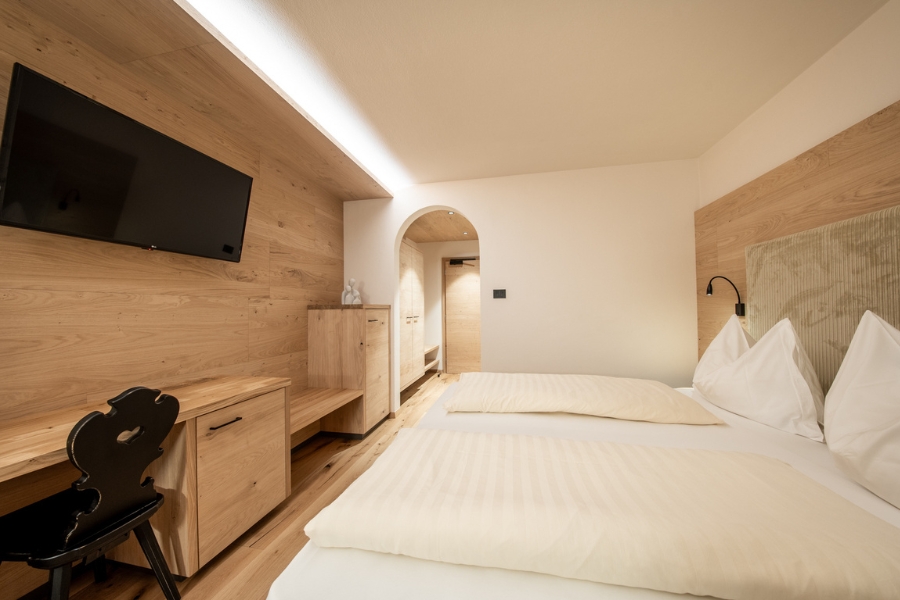* A covered passageway leads directly to the indoor swimming pool and wellness area in the house Villandro, approx. 70 m.