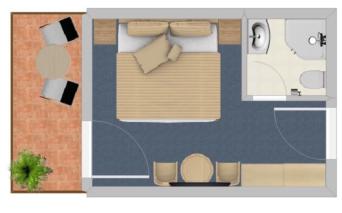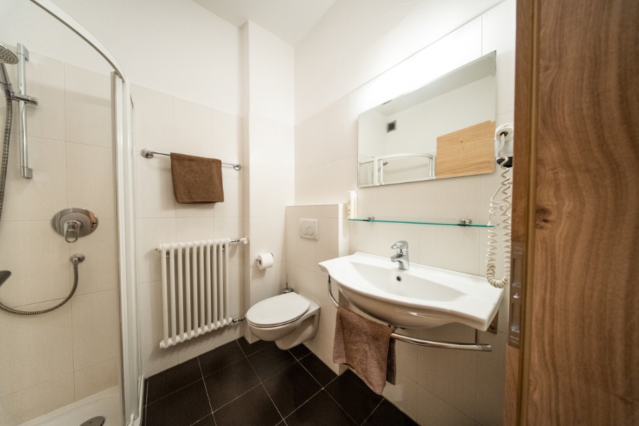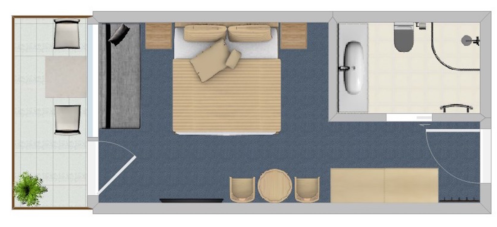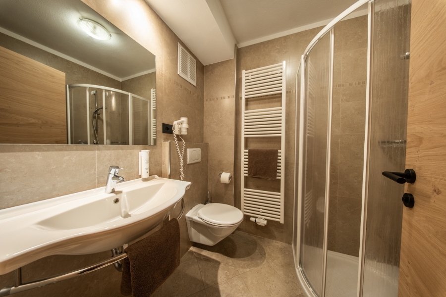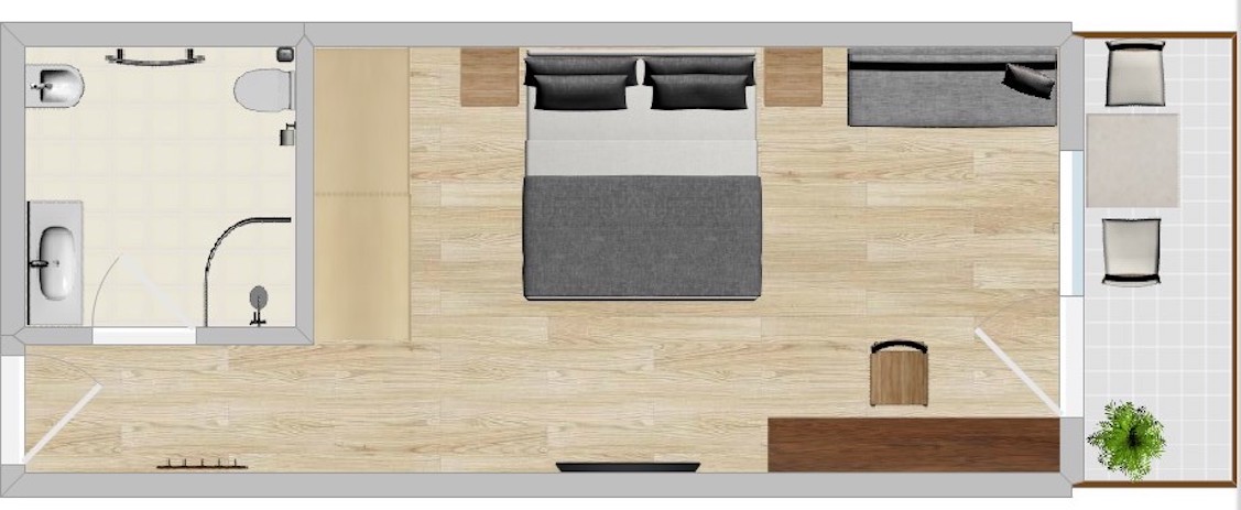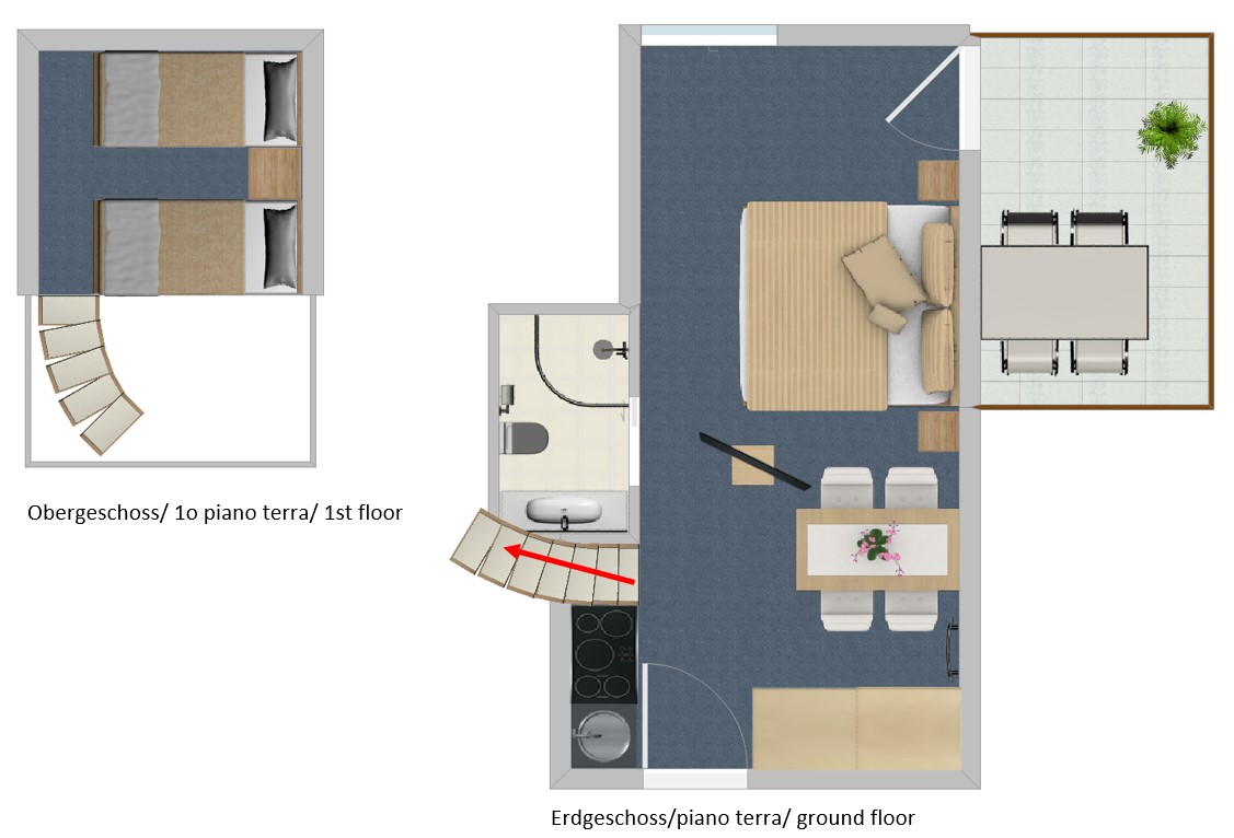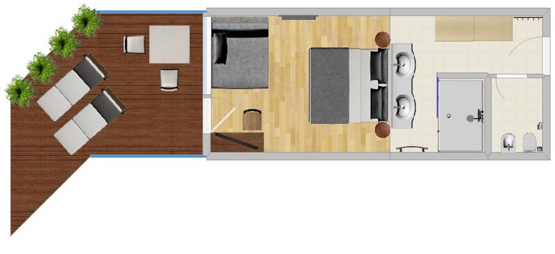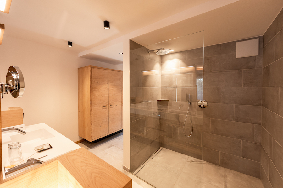 *The suites on the ground floor have a beautiful wooden terrace and a bathroom with separate WC/bidet, large open shower and integrated washbasin in the room.